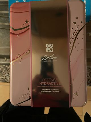 Cofanetto regalo BioNike Defence Hydractive. - Contiene crema idro-nutriente e siero idratante intensivo. - Ispirazione con stelle e onde rosa e oro.