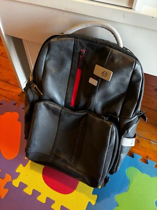 Zaino Piquadro, un regalo ricevuto ma mai utilizzato. - Materiale in pelle. - Dettagli rossi. - Design moderno.