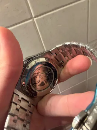 Elegante orologio automatico a carica manuale con quadrante blu e cassa in acciaio. - Movimento automatico a carica manuale - Quadrante blu con motivo a scacchiera - Datario a ore 3