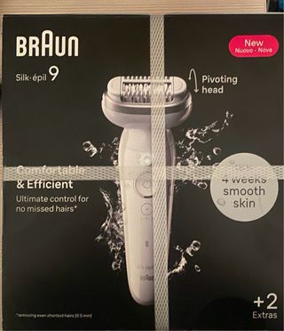 Epilatore Braun Silk-épil 9, ideale per una pelle liscia e morbida. - Testina pivotante per un comfort ottimale. - 4 settimane di pelle liscia. - Rimuove anche i peli più corti (0,5 mm). - Include +2 Extra.