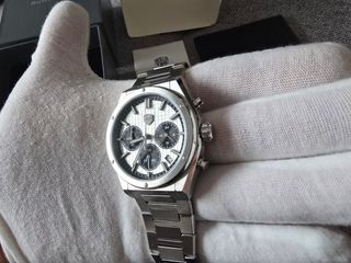 Elegante orologio cronografo con cassa e bracciale integrato in acciaio. Orologio Nuovo con corredo, movimento ibrido Meca-quartz Seiko VK63, parte cronografica meccanica e parte tempo quarzo. Vetro in zaffiro, fondello a vite, interamente in acciaio massiccio, diametro cassa 39mm, lug to lug 46. - Quadrante con dettagli a contrasto. - Funzione cronografo. - Datario. - Chiusura deployante.