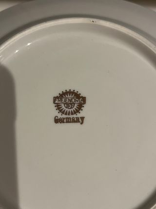 Set di 6 piattini in porcellana con decorazioni floreali e bordo dorato. - Design elegante con motivi floreali. - Bordo rifinito in oro. - Ideali come sottobicchieri o per servire piccoli stuzzichini.