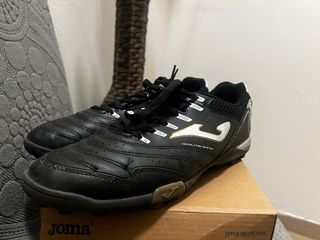 Scarpe da calcio Joma Maxima per turf. - Taglia EU 43. - Colore nero e argento. - Modello TF (Turf).