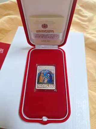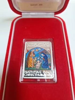 Moneta da 25 Euro Vaticano Nativitas D.N.I. Christi del 2024. - Dritto: raffigurazione della Natività. - Rovescio: stemma dello Stato della Città del Vaticano. - Anno di emissione: 2024. - Valore nominale: 25 Euro. Ultimo 25 Euro del PONTIFICATO di Papa Francesco