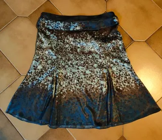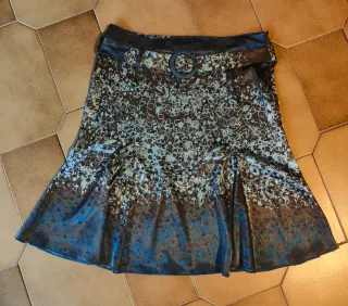 Gonna con fantasia floreale blu/azzurro/marrone, con cintura. Zip al fianco sinistro. Usata poco, come nuova. Taglia 44 - misure: Larghezza vita 40 cm Lunghezza 59 cm