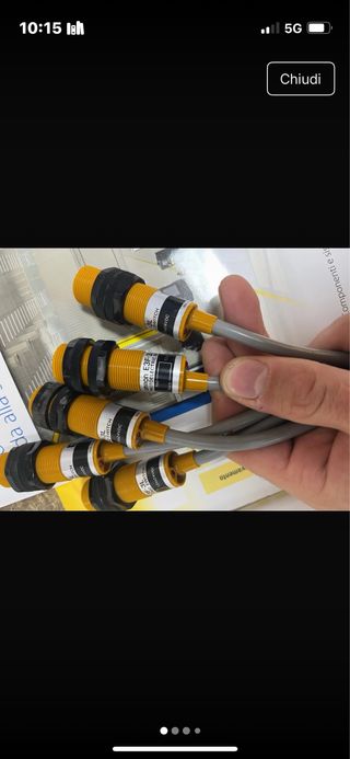 Vendo sensori di prossimità Omron, ideali per applicazioni industriali. - Modello E3F-3. - Tensione di alimentazione 24VDC. - Corpo cilindrico in metallo. - Cavo di collegamento incluso.