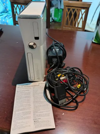 Console Xbox 360 di colore bianco, completa di alimentatore e cavi. - Alimentatore incluso. - Cavi AV inclusi. - Manuale di istruzioni Important Information incluso.