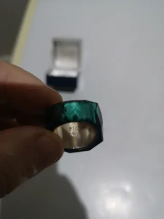 Anello Swarovski Nirvana con cristallo verde e base in acciaio. Un gioiello elegante e luminoso. - Cristallo sfaccettato di colore verde intenso. - Montatura in acciaio lucido. - Misura 60 (diametro interno 21 mm).