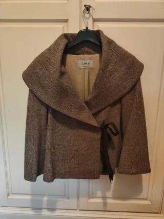 Elegante giacca Aniye By, in tessuto tipo tweed, foderata. Ampio collo a scialle, chiusura con bottone + fiocco, manica 3/4. Condizioni ottime, come nuova! Tg.44 - misure: Spalle 41 cm Torace 55 cm Lunghezza da cucitura spalla davanti 57 cm Lunghezza manica da cucitura spalla 51 cm