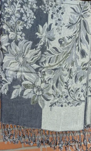 Sciarpa da donna in tessuto jacquard floreale grigio argento con frange Misure 69x149