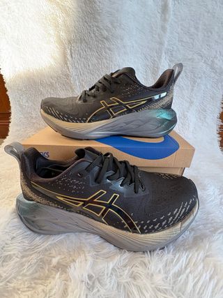 ASICS Novablast 4 Platinum “Black & Champagne” – Uomo 43 EU (US 9.5) • Condizione: come nuove, usate pochissimo, sempre con scatola originale. • Tecnologia FFBlast+: ammortizzazione avanzata per il massimo comfort durante la corsa o nel tempo libero. • Design: Nero e Champagne, un mix elegante e versatile che si adatta a ogni outfit. • Taglia e vestibilità: Taglia 43 EU (US 9.5). Essendo una scarpa molto sportiva e con un design versatile, si adatta bene anche a chi porta una mezza taglia in più o in meno, garantendo comfort per diverse vestibilità. • Caratteristiche: • Tomaia in mesh traspirante, suola resistente e tecnologia
