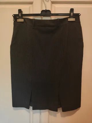 Gonna tubino, lunghezza 59 cm. Tru Trussardi Tessuto piccolo spinato, foderata, con zip sul fianco, spacchetti dietro e passanti in vita. Tg.44 Colore grigio (nella 3° foto si vede bene il colore reale)