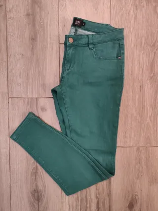 Jeans tipo leggings in un bel colore verde ottanio 🤩 Vita media, vestibilità skinny. Cotone molto elasticizzato, super comodi! Tg 44 - misure: Vita 37 cm Bacino 47 cm Lunghezza fianco totale 98 cm