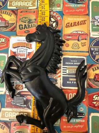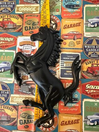 Scultura di un cavallino nero in alluminio, ispirato al simbolo Ferrari. - Materiale: Alluminio - Colore: Nero - Altezza: 21 cm