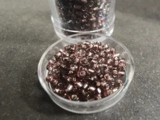 Perline in vetro 2 mm con rivestimento interno argentato, circa 33 gr. Colore bordeaux-marrone Ideali per gioielli o ricami. Vedere altri annunci per altri tipi di perline - sconto per acquisto del set.