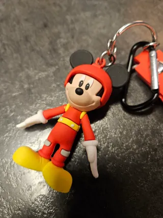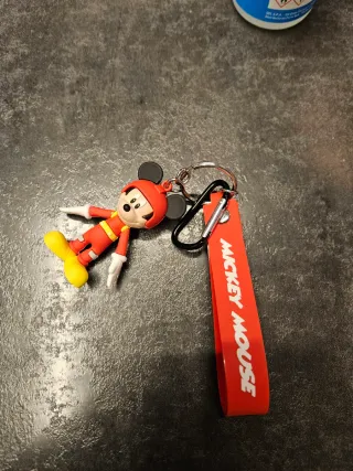 Portachiavi con personaggio di Mickey Mouse. - Personaggio in gomma. - Laccetto rosso con scritta MICKEY MOUSE.