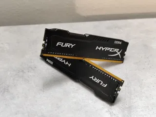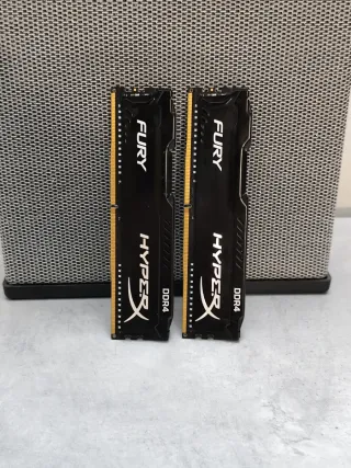 2*8gb 16gb totali Funzionanti Tutto come da foto Capacità: 16 GB (kit 2×8 GB) Frequenza: 2133 MHz (DDR4-2133) Latenza: CL14 Voltaggio: 1.2 V Serie: HyperX Fury Black Formato: DIMM desktop
