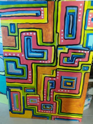 Opera d'arte astratta dipinta a mano con colori acrilici.Pezzo unico fatto da me Misure 100cm x 70 cm,spessore 1 com - Motivo geometrico colorato. - Tela di grandi dimensioni.