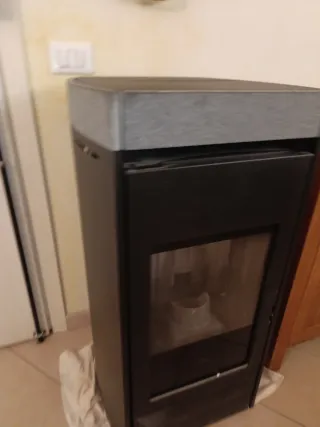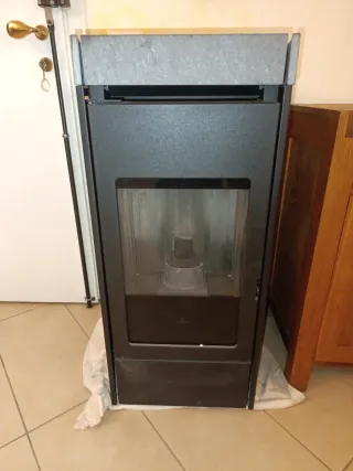 Stufa a pellet Edilkamin modello Lena Plus, con finitura in pietra e top in acciaio. - Design moderno ed elegante. - Rivestimento in pietra. - Top in acciaio verniciato nero.