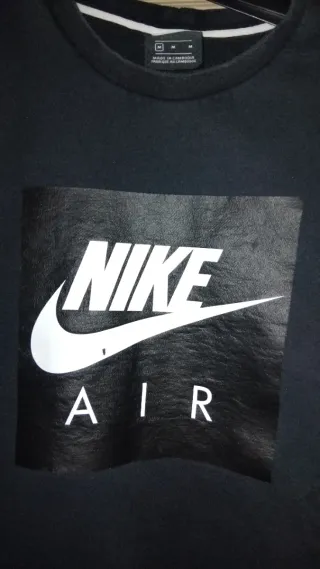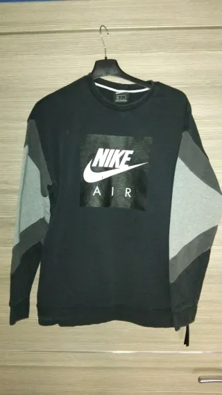 Felpa girocollo Nike con logo Air sul davanti (leggermente rovinato). Adatta sia per uomini che per donne. - Logo Nike Air stampato. - Inserti geometrici grigi sulle maniche. - Zip laterale