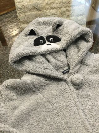 Morbida vestaglia da camera con un simpatico disegno. - Cappuccio con dettagli a forma di orecchie e musetto. - Chiusura frontale con bottoni a pompon. - Due tasche applicate sul davanti.