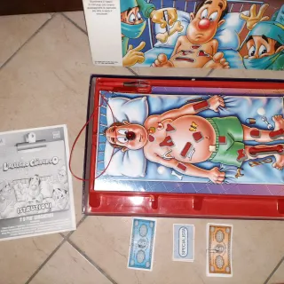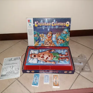 Gioco da tavolo L'Allegro Chirurgo della MB Giochi. - Per 2-4 giocatori. - Età consigliata: 6-12 anni. - Include scatola, tabellone di gioco, pinzette e carte. - Scatola originale con istruzioni incluse. Il gioco è completo,qualche segno di usura sulla scatola