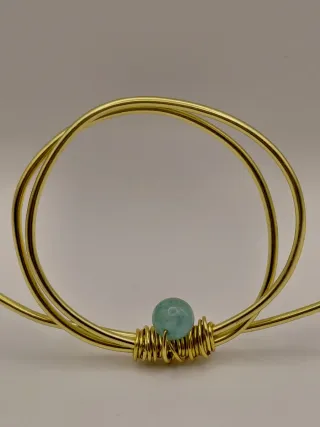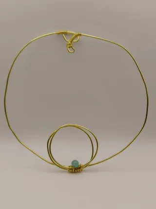 Collana artigianale con design unico. - Filo metallico color oro. - Pietra centrale color turchese.