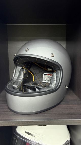 Casco stile vintage retrò taglia S tagliato un pezzo di imbottitura per poterlo usare con gli occhiali poco usato regalo maschera