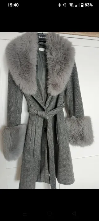 Elegante cappotto da donna Via Condotti ,nuovo e mai usato. - Taglia S - Colore grigio - Dettagli in pelliccia sintetica sul collo e sui polsini - Cintura in vita per una vestibilità personalizzata - Tessuto a spina di pesce