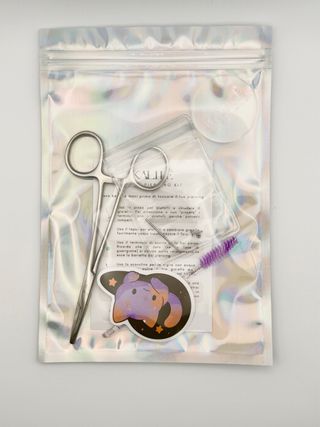 Kit per piercing KALIPÉ, ideale per la cura e la manutenzione dei tuoi piercing. Contiene gli strumenti essenziali per la pulizia e la gestione dei gioielli. - Pinza per aiutarti nel cambio gioielli - Taper per cambio gioielli - Scovolino per pulizia - terminale di scorta - dischetti in silicone per ipertrofia - barretta in acciaio chirurgico 1.2x6 mm gli adesivi possono variare