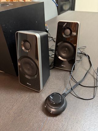 Sistema di altoparlanti Trust 2.1. - Subwoofer compatto. - Due satelliti. - Controllo volume esterno.