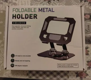 Supporto pieghevole in metallo per tablet, ideale per l'uso quotidiano. - Realizzato interamente in metallo, più durevole. - Stabile e non si ribalta. - Rotazione a 360 gradi. - Adatto per dispositivi tablet da 4-16 pollici.