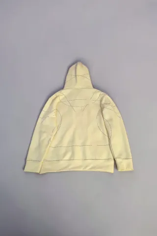 Felpa Louis Vuitton di colore giallo, un capo confortevole e alla moda. - Monogramma LV traforato sul davanti. - Dettagli traforati a rombi sulle maniche e sul busto. - Cuciture a vista con microfori. - Cappuccio con laccetti.