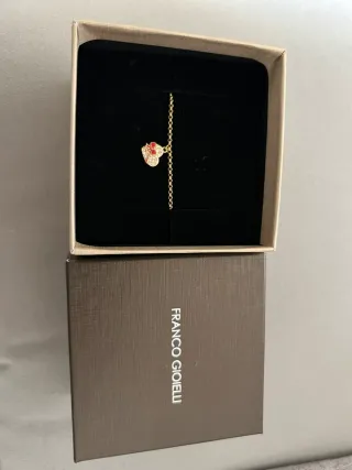 Delicato bracciale con ciondolo a forma di cuore, perfetto per un tocco di eleganza, mai indossato. In acciaio inossidabile. Compreso di confezione e scatola. Spedizione veloce! - Ciondolo a forma di cuore con pavé di cristalli. - Fiocco rosso decorativo sul cuore. - Catena sottile color oro.