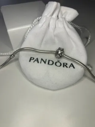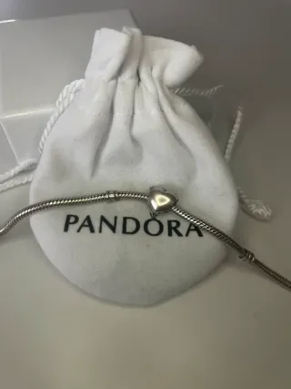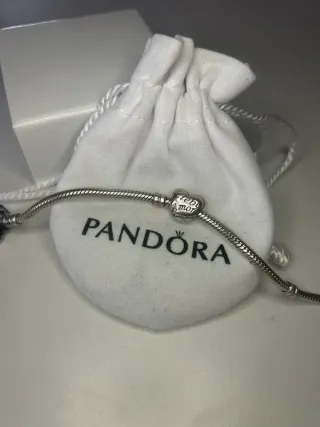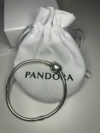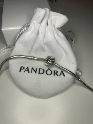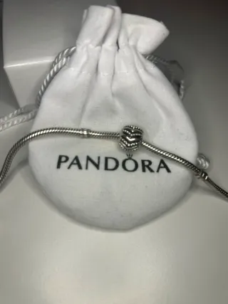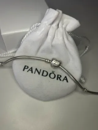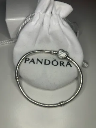 Bracciale Pandora chiusura cuore brillantinato. Misura più piccola. Possibilità di acquistare assieme agli charm. Compreso di sacchettino.