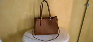 Borsa in vera pelle di vitello Dollaro Marca " The genuine Leather", semi rigida e portabile a mano o tracolla regolabile ( dello stesso materiale) Tre scomparti ampi di cui uno con zip centrale. - Materiale: Pelle di vitello. - Colore: Marrone. Prezzo orginale 129,90