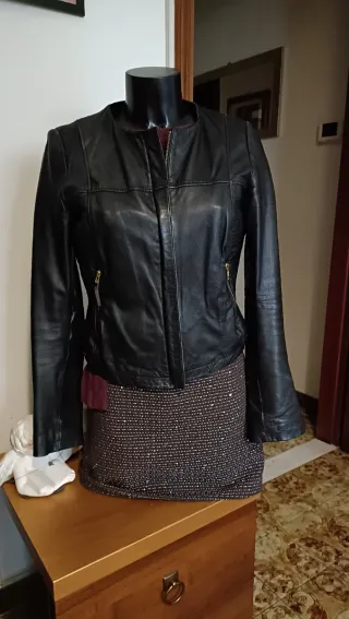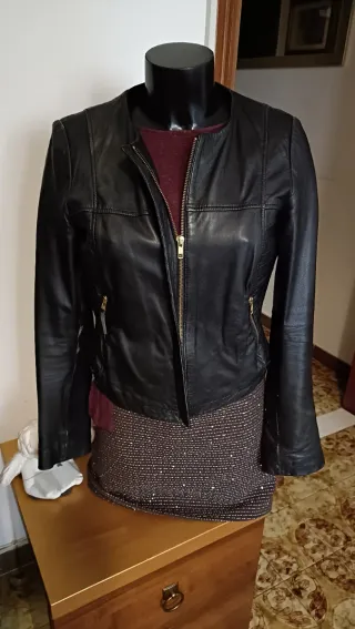 Giacca pelle nera Mango