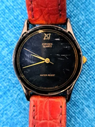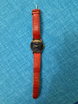 Elegante orologio da polso con cinturino in pelle rossa. 30 - Quadrante nero. - Dettagli dorati sul quadrante.