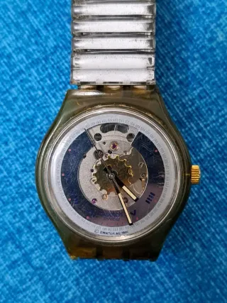 Orologio Swatch automatico con movimento a vista. - Cassa e cinturino in metallo. - Dettagli color argento