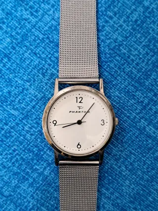 Elegante orologio da polso con cassa in acciaio e cinturino a maglia milanese. - Quadrante bianco. - Indici applicati.