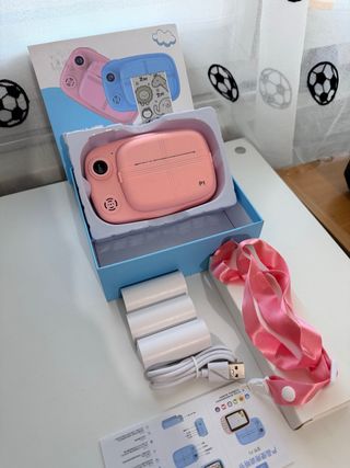 Macchina fotografica digitale rosa per bambini, ideale per i più piccoli. La confezione include la fotocamera, rotoli di carta termica, un cavo USB e un laccetto. - Colore: Rosa - Materiale: Plastica - Include: Fotocamera, 3 rotoli di carta termica, cavo USB, laccetto