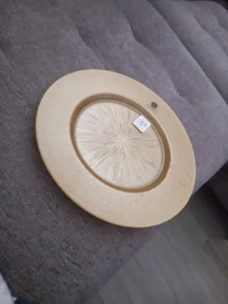 Elegante piatto decorativo con un diametro di 33 cm, perfetto per aggiungere un tocco di classe alla tua tavola. - Design a raggiera al centro. - Bordo rialzato. - Finitura lucida.