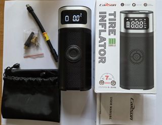 Pompa portatile CARSUN T2190 con Display LCD digitale per gonfiaggio ad aria per auto-moto-bici ed altro. Display digitale, impostazione facile in 4 unità diverse (PSI, KPA, Bar e KG/CM2). Ricaricabile con lampada LED senza fili Power Bank e torcia con sulla parte superiore LED che ti offre comodità per gonfiare e cambiare le gomme al buio. SPECIFICHE: Capacità della batteria: 2000mAh Tempo di esecuzione: <7min Specifiche del cilindro: 19mm Pressione di uscita: 150PSI Tempo di carica: 3/4h Dimensioni: 72X52X168mm Potenza nominale: 96W Voltaggio di carica: 5V Corrente: 9° Peso: 720g Elenco degli accessori