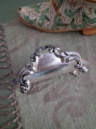 Elegante portatovaglioli d'epoca, realizzato in argento 1000 Timbro in foto Segji del tempo ma in ottime condizioni considerando gli anni - Design classico con finiture lavorate. - Materiale: Argento 1000.