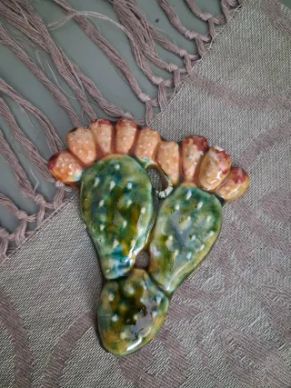 Deliziosa decorazione in ceramica a forma di cactus, tipica dell'artigianato di Seminara. Perfetta per aggiungere un tocco di colore e originalità alla tua casa. - Realizzata in ceramica smaltata. - Design ispirato al cactus. - Pezzo unico artigianale.