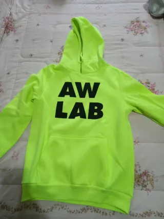 Felpa con cappuccio AW LAB, colore verde fluo. - Logo AW LAB stampato sul davanti. - Tasca a marsupio frontale. - Cappuccio con laccetti.
