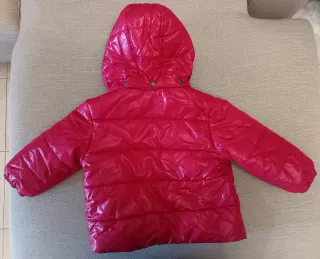 Caldo cappotto rosso per bambino - Taglia 12/18 mesi. - Marca Mignolo. - Cappuccio integrato felpato. - Chiusura con zip. - Tasche laterali con zip.