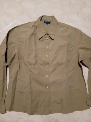 Camicia da donna a maniche lunghe. - Colore beige - Chiusura con bottoni frontali - Due tasche sul petto con patta - Collo classico