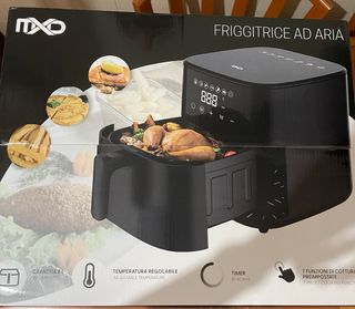 Friggitrice ad aria con capacità di 8 litri. - Temperatura regolabile. - Timer da 0-60 minuti. - 7 funzioni di cottura preimpostate.