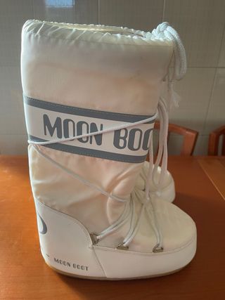 Scarponcini Moon Boot originali, perfetti per l'inverno. - Modello unisex. - Tomaia in tessuto imbottito. - Suola in gomma antiscivolo. - Allacciatura regolabile con cordini.